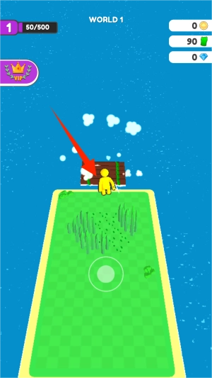 初次体验时,用手指划动来操控角色,让它收集地上的杂草,每一捆绿植都可以换成钞票奖励。