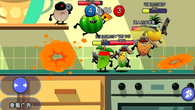 一款以水果为主题的趣味乱斗游戏,让玩家体验呆萌水果角色与爽快战斗的结合。游戏规则是在限定时间内击败尽可能多的对手,玩家需要灵活移动躲避攻击,并利用武器的特性来战胜敌人。快节奏的对抗充满欢乐,邀请大家加入这场色彩缤纷的水果大战。