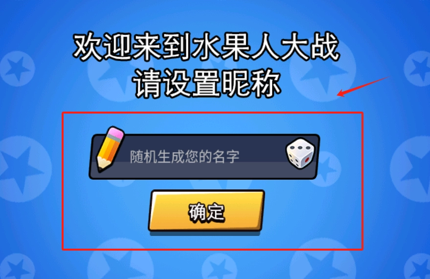 点击铅笔骰子就能随机获取名字,输入昵称后点击黄色的确定按钮,就可以进入游戏了。