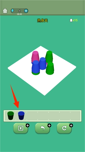 当点击操作完成后,该容器会移动至下方区域,一旦出现三个颜色相同的容器,系统便会自动将它们消除。