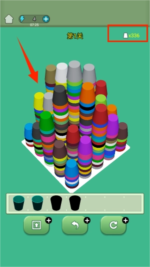 全部消除后难度会提升,开启更高阶的挑战,右上角显示的是你需要消除的杯子总数。