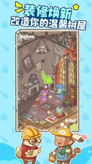 游戏内包含多个可供经营的场景,玩家既能打造专属树屋,也能发展特色产业,从而解锁更多趣味玩法。
