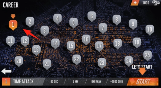 当你进入生涯模式的关卡选择界面后,找到带有箭头标识的第一个关卡,接着点击启动按钮,就能开启这一关的挑战之旅了。