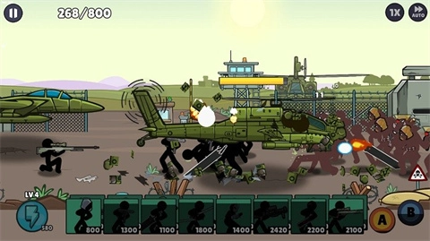 《火柴人英雄战争2》是一款以火柴人为主题的策略战争游戏。在游戏中,玩家需要招募形形色色的英雄角色,运用机枪、各类武器等进行策略部署,来抗衡一波接一波袭来的丧尸与敌人,不断挑战难度递增的关卡,最终目标是摧毁敌人的实验室。