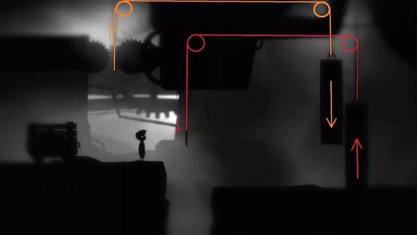 在这个黑白界限清晰的世界中,无论是形态诡异的蜘蛛、可能将你压扁的巨大石块,还是时常能为你提供帮助的木箱,全都仅以轮廓的形式呈现。玩家需要依靠自己的逻辑推理能力与丰富的想象力,和场景中的各种元素以及道具进行互动,从而闯过致命的机关、避开敌人的追击,或是将敌人消灭。