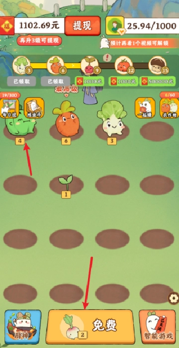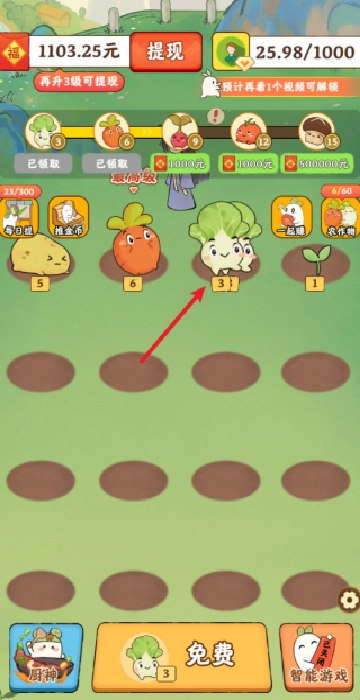 可以通过合成高级蔬菜,或者直接把不需要的蔬菜拖到回收处,获得的金币能用来购买更多种子,也可以解锁新的内容。