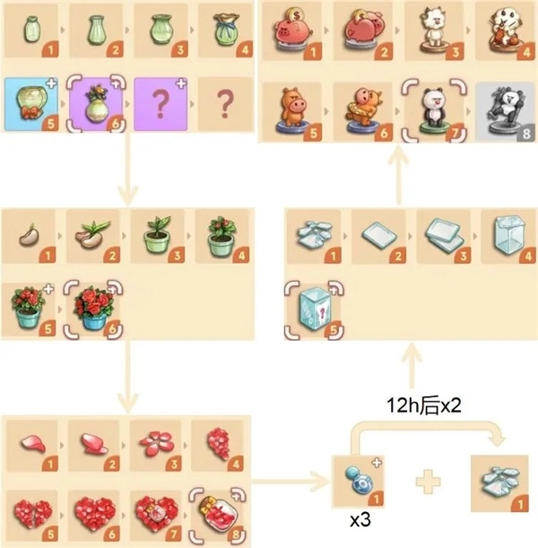这个任务对体力的要求不算高,不过既得占用不少空间(得有足够花盆来产花瓣),还得花很多时间——花瓶生成够数的花盆要等,花盆长出够量的花瓣要等,花瓣瓶里的香水转化成玻璃渣更是得耗12小时,就算全程看广告加速也得8小时,只能一步一步慢慢来了。