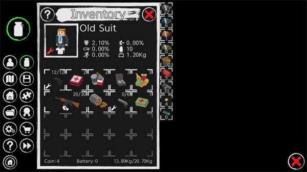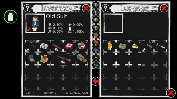 点击左上角的瓶子图标即可打开背包,背包内收纳了你收集到的各类资源与武器,点击相应物品就能进行使用。