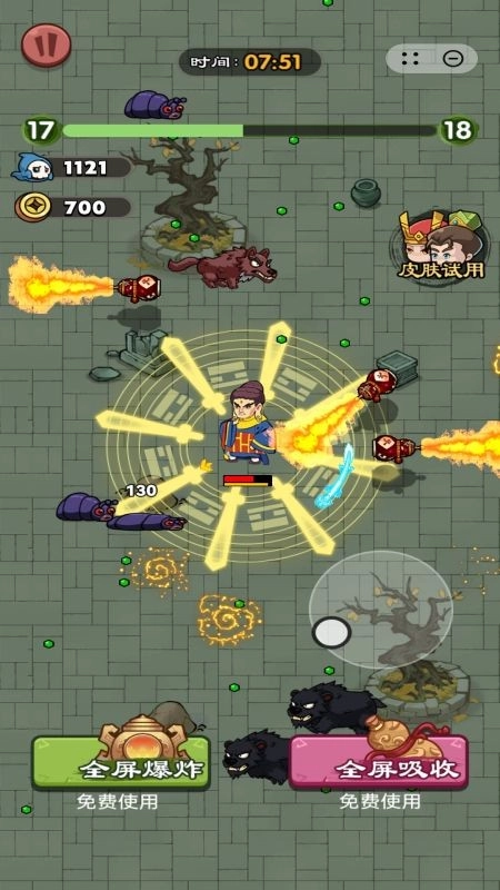 这是一款休闲闯关类小游戏,通过转刀修炼独门武学,在不断杀怪中获取角色经验、提升等级,还能修炼武学增强战斗力,快来尽情杀怪,把它们全部消灭吧!