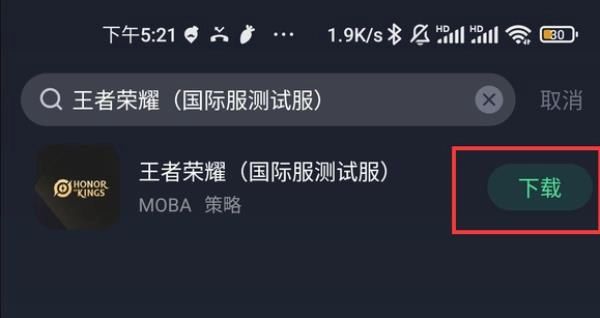 请先清理掉其他来源的游戏安装文件,之后打开奇游应用,在内部搜索栏查找“王者荣耀(国际服测试服)”并按提示操作。