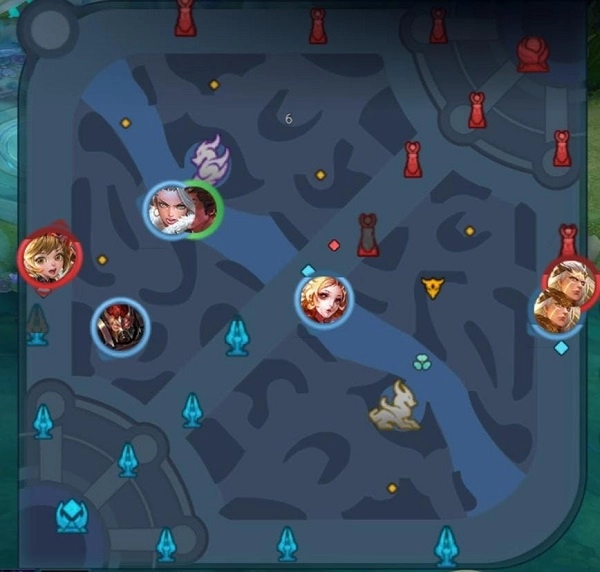 玩家要想赢得比赛,就得摧毁敌人的水晶或者基地塔。水晶在每个队伍基地的最里面,也就是玩家出生的地方。地图上总共有三条路线:对抗路、中路和射手路,也可以叫做上路、中路和下路。