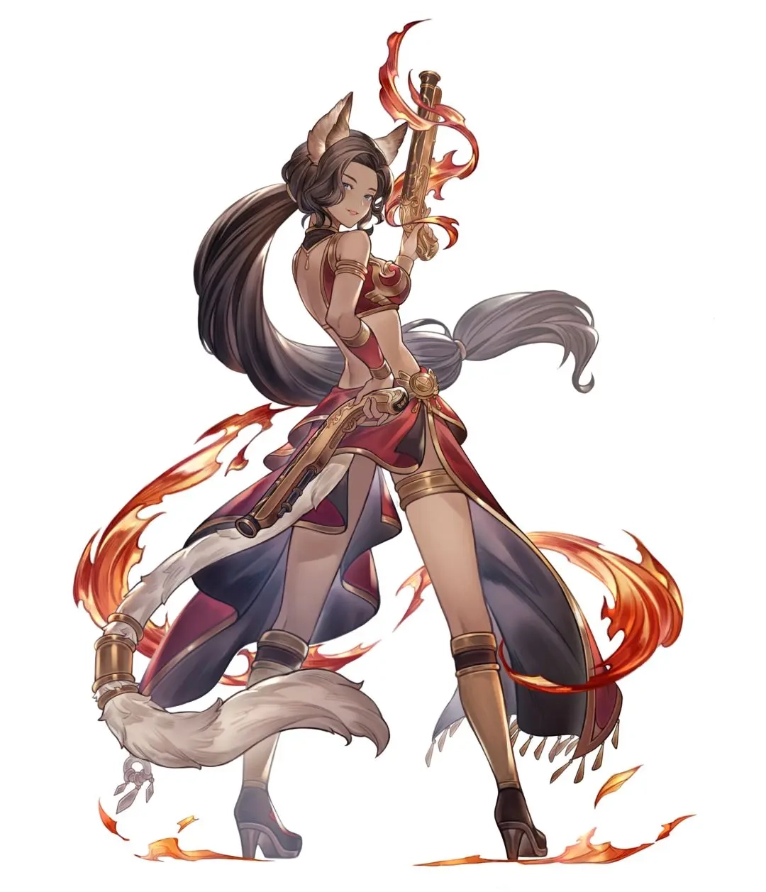 奈芙丽塔是一名火属性的敏捷型射手。她擅长运用双枪发射具备超强穿透力的魔弹,能对直线上的敌人造成巨额伤害。
