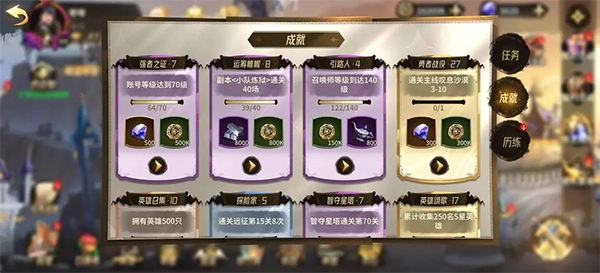 新手阶段有不少活动,能拿到大量需要的材料,通常会有红点提示,跟着红点操作就好。各个系统都设有对应的进度奖励,完成任务和达成成就都能获取各类道具。