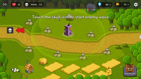 塔建完之后,可以提前开怪,点击骷颅头就可以了。