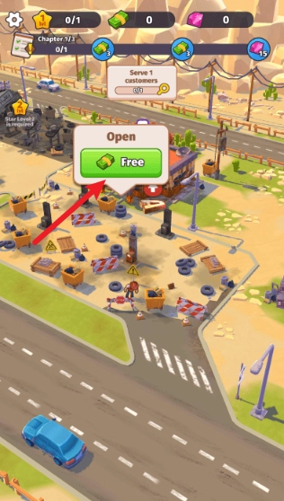 开启了加油站后,通过为来往的汽车加油来赚取金钱。