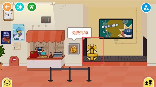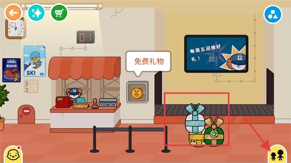 进入新场景后,点击标有【免费礼物】提示的标识,即可触发礼物领取的互动流程。