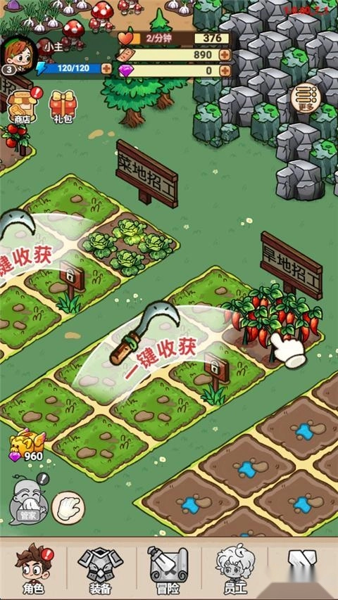 解锁农场后,你就能在这里收集蔬菜啦;而且解锁不同的区域,能体验到的内容也不一样哦。
