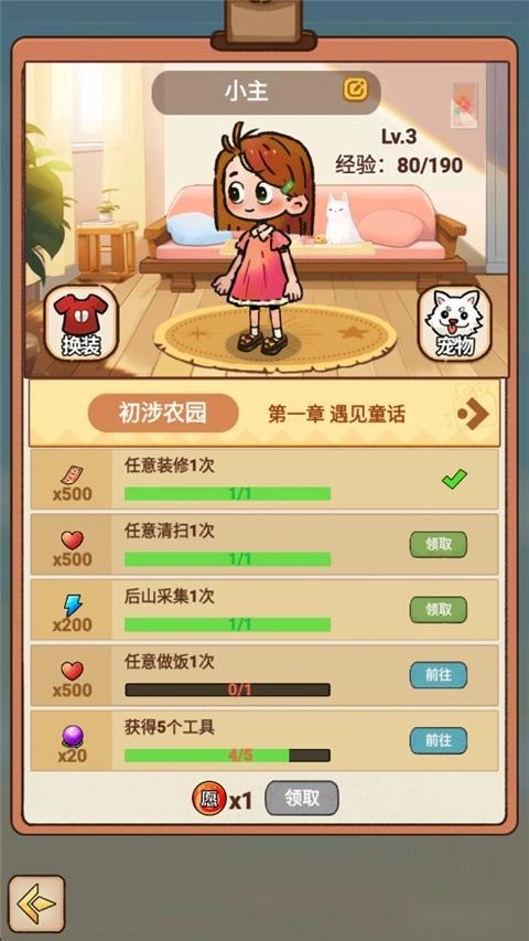 玩家进入游戏后,核心玩法是完成各类任务,通过点击操作就能前往对应的区域进行资源收集。