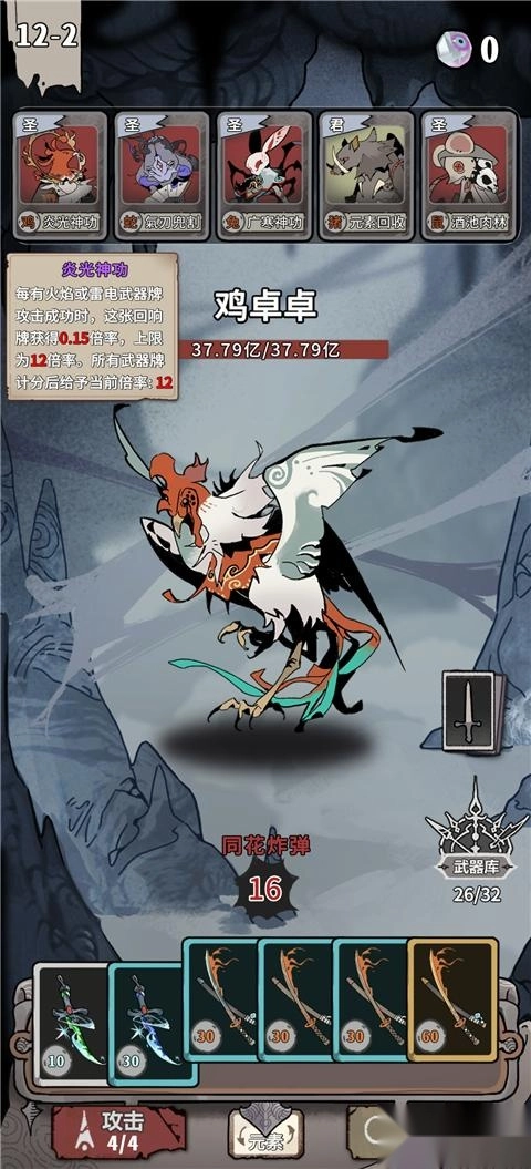 五十亿级别的大Boss,我才刚打完第一关。我手里全是火焰系的卡牌,不过后面匕首的属性就有点杂乱了。