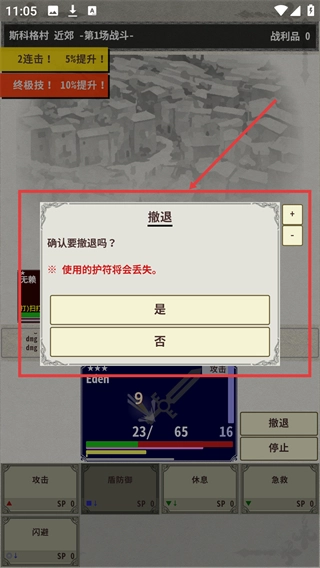 在战斗过程中选择撤退,会导致当前使用的护符丢失;当弹出撤退确认框时,需要结合当下的战局形势,慎重决定是否执行撤退操作。