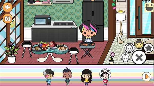 点击右下角的按钮能够挑选不同的角色添加到场景里,你可以借助不同的物品进行互动。
