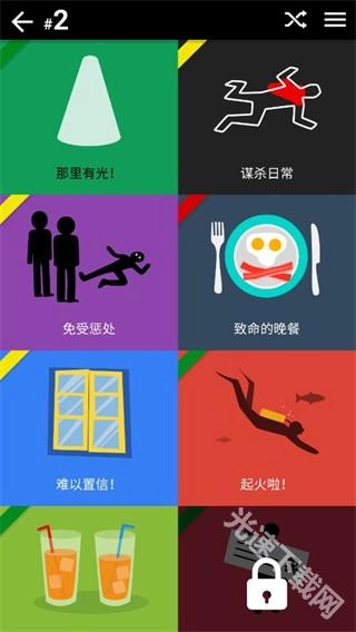 玩家能够在游戏中挑选自己想体验的案件,不同颜色对应着不同难度等级,其中红色代表困难模式,绿色代表简单模式,黄色则代表普通模式。