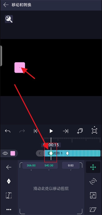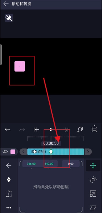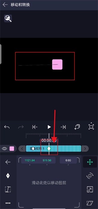 紧接着,把圆角矩形也移动到所需位置,接着设置结束关键帧;