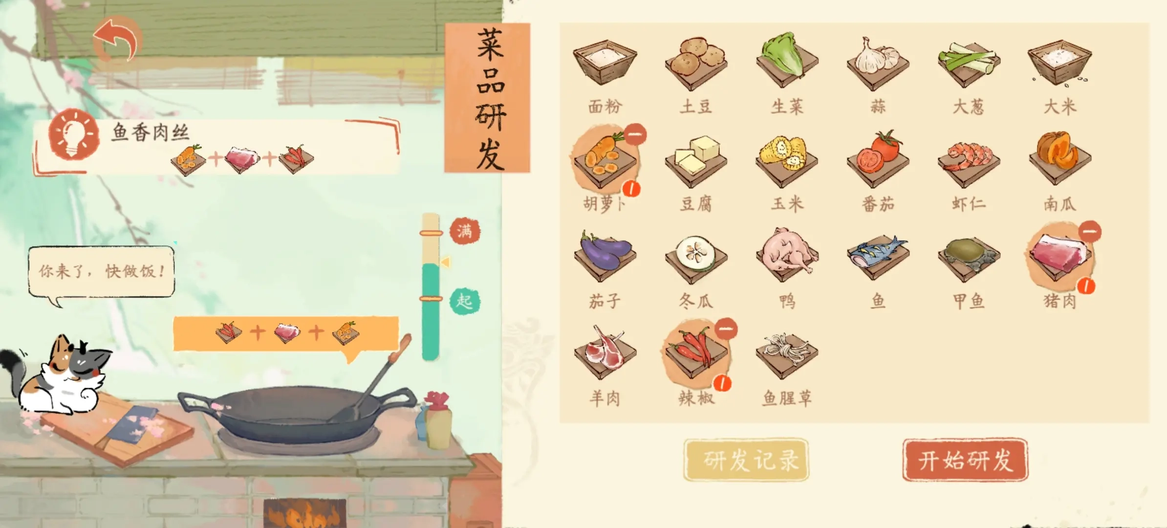 得盯着仓库的库存情况,看看缺了哪些物资(特别是肉类),一旦发现短缺就得立刻安排名士去补充,不然卡起来会特别难受。前期的时候,米面肉这些基础物资可千万不能断供。