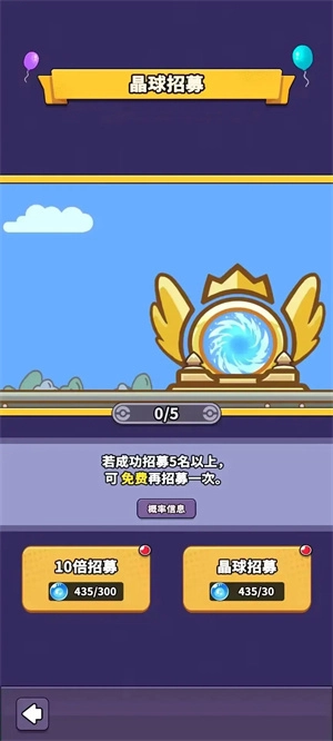 这个晶球招募设有成功招募多名就能免费再招募的机制,通常情况下,正常招募能拿到更多道具!不过十倍招募也有它的独到之处!!那就是可以大量获取稀有招募道具。