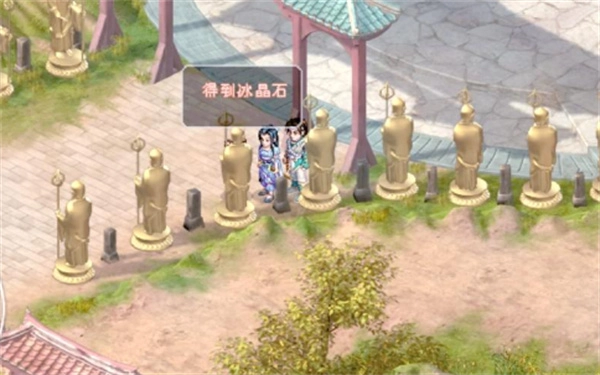 进入大殿后,先别和千叶搭话,出去到院子里搜寻一下。下方右侧第三个铜像那儿有碧玉蜂,大门外上方左侧第一个铜像处有银丝蛇,下方左侧第三和第四个铜像之间有冰晶石。