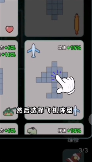 先随意选个房间,确定飞机阵型,接着依据绿色加号来配备基地。