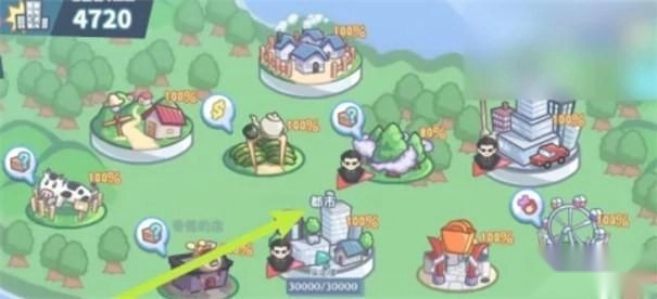 打开怠惰的怪兽公主不想工作,首先在地图上面点击【都市】。