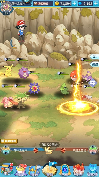 踏入游戏即刻开启冒险征程,开局便能让你重温精灵宝可梦的经典回忆。在这里,你将成为一位初来乍到的训练家,刚进入游戏就能召唤出专属的宝可梦伙伴,与它携手踏上后续的冒险之路。获得宝可梦后,冒险便正式拉开序幕:你可以带着它参与冒险模式挑战BOSS,也能选择挂机轻松升级。值得一提的是,首次挑战BOSS时,除了开局获得的毒刺水母,还能额外得到宝石海星加入队伍,一同并肩作战。