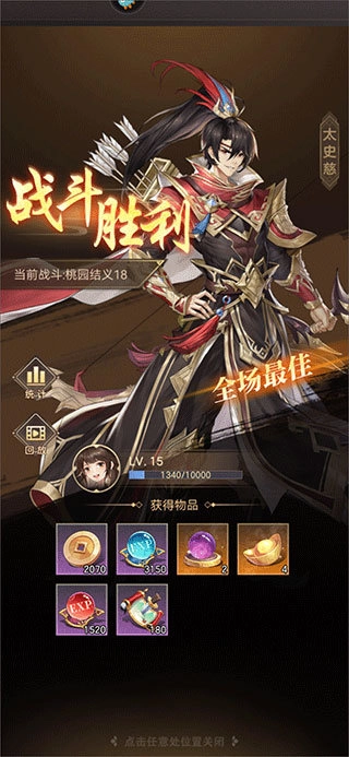 战斗结束后,若想回顾刚才的战斗过程,可点击回放功能进行观察研究;点击统计选项,则能查看武将在战斗中的输出、治疗等详细数据。