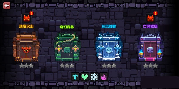 秘境副本是获取装备的核心渠道,每一层秘境包含地底火山、奇幻森林、冰风城寨与亡灵城堡四张子地图,对应的怪物属性分别为火、水、木和杂属性(即三种属性的怪物均有分布),玩家选用针对性的武器可大幅提升效率!秘境副本将依据玩家冒险等级的提升逐步解锁新的层数。