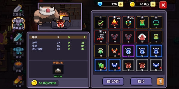 此外,玩家还有机会通过参与活动或者在阿兔商店里购买装备碎片,当碎片集齐后,就能到地图左侧的铁匠那里打造装备了,不过打造装备需要花费一定的时间和金币才行。