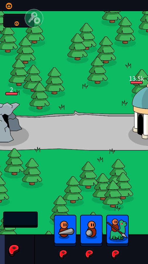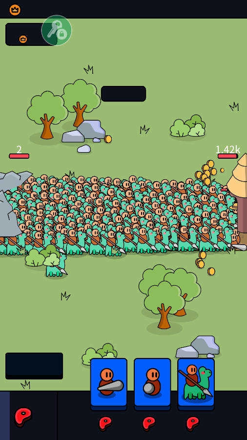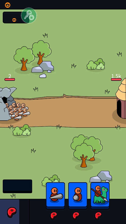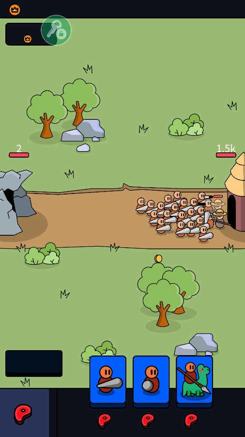 在这款游戏里,我们得持续召唤战士来守护自己的基地,召唤的前提是消耗食物,而食物会自动增加。