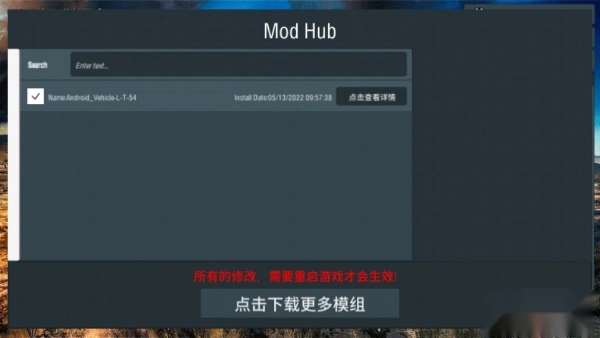 把游戏本地的mod模组文件放好后,我们得重启一次游戏,这样才能在游戏里找到mod文件,具体就像下面这张图显示的那样。