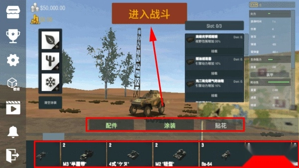 我们选定了想要体验的武器类型后,还能对驾驶载具的配件、涂装和贴花进行自定义设置。等这些都确认好,就可以点击“进入战斗”了。