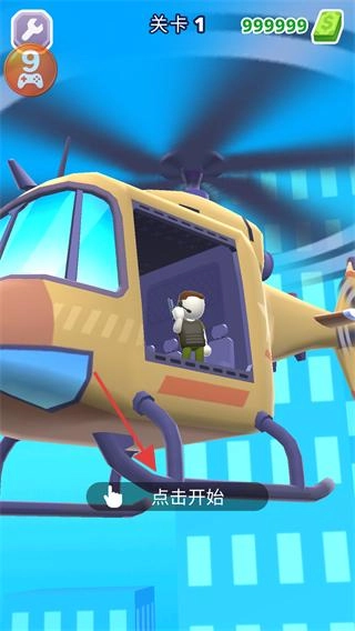 在关卡1的直升机场景里,点击【点击开始】按钮,就能启动关卡任务,为接下来的行动做好准备。