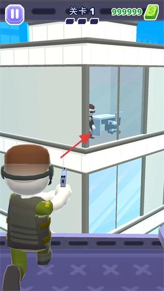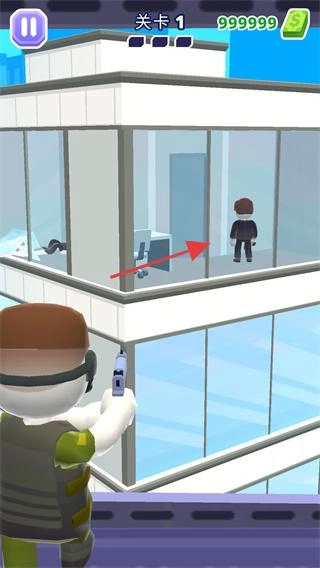 控制角色对准建筑里的目标人物,借助手中的装置采取行动,推动关卡的任务进度。