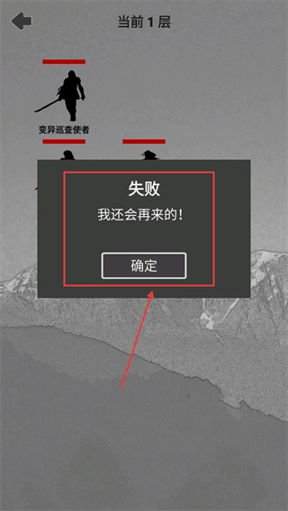 挑战失败后,点击确定按钮即可返回,你可以调整装备或提升等级后再次发起挑战,通过积累经验来逐步战胜对手。