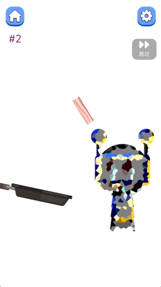 点击屏幕即可让培根掉落,与此同时操控平底锅完成弹射动作,把握好角度让培根落到恰当的位置。