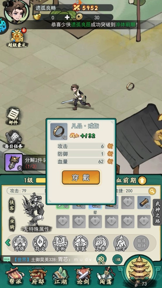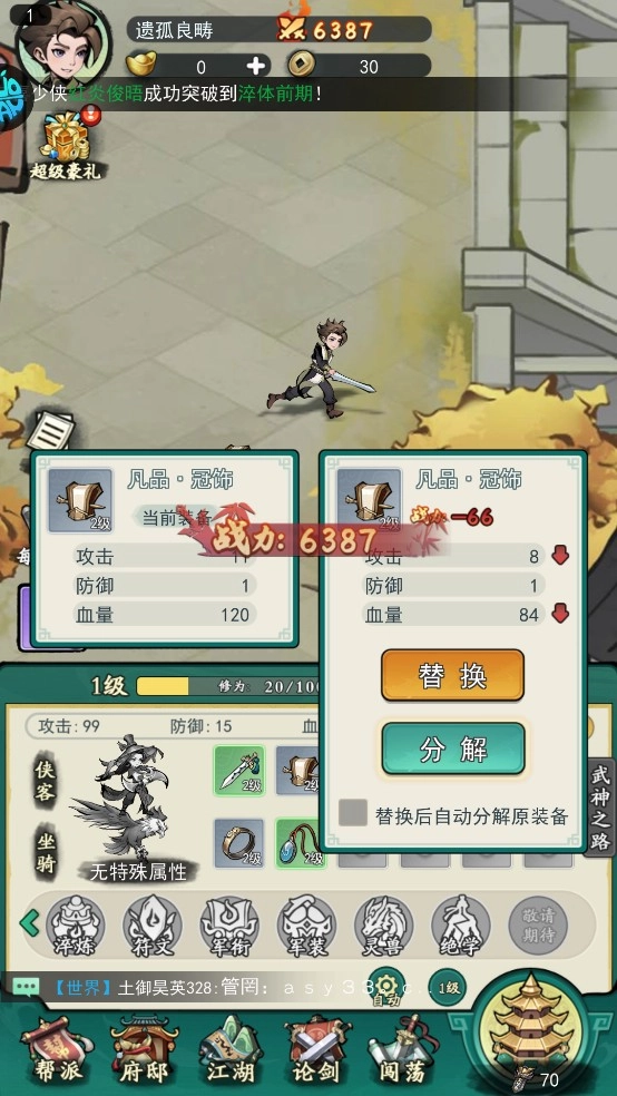 超畅快的武侠大世界挂机体验!超爽的武侠挂机玩法!置身这广阔江湖,只需轻松挂机,就能自动历练,获取经验与资源,尽享江湖的悠然自在。