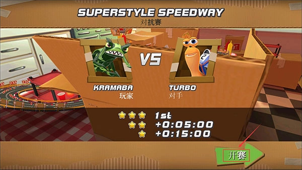 选择的是对抗赛模式,所以会与AI对手在同一条赛道上竞技,界面上还呈现了得星的具体规则。