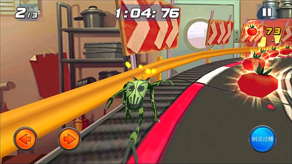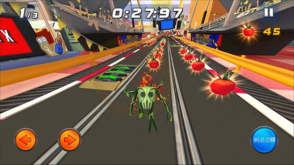 收集赛道中的番茄获得额外的分数。