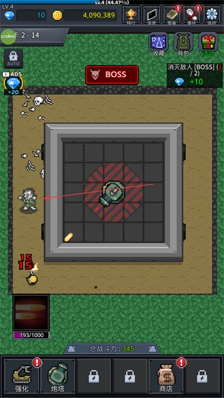 1、在关卡内,炮塔会主动攻击前来进犯的BOSS与敌人,不断消灭敌人能够积累资源。