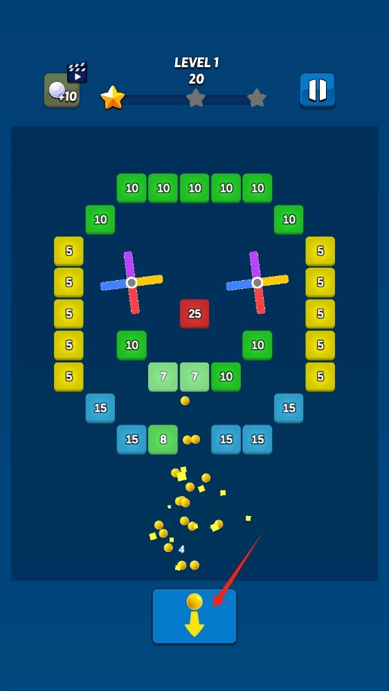2、星级奖励机制:在射击过程中,要尽可能击碎更多砖块来收集3颗星。当完美通过关卡时,会解锁更强大的子弹,从而提高粉碎砖块的效率,同时增强游戏带来的成就感。