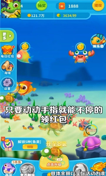 1、游戏体验的趣味性得到了更充分的呈现,每种海洋生物都能为玩家带来不少惊喜红包。