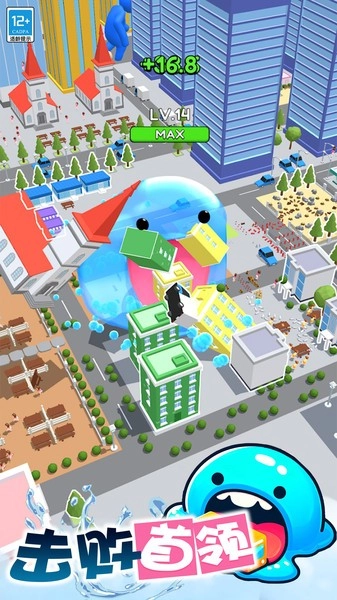 2、玩家可以控制他们的粘液角色吞下城市中的竞争。
